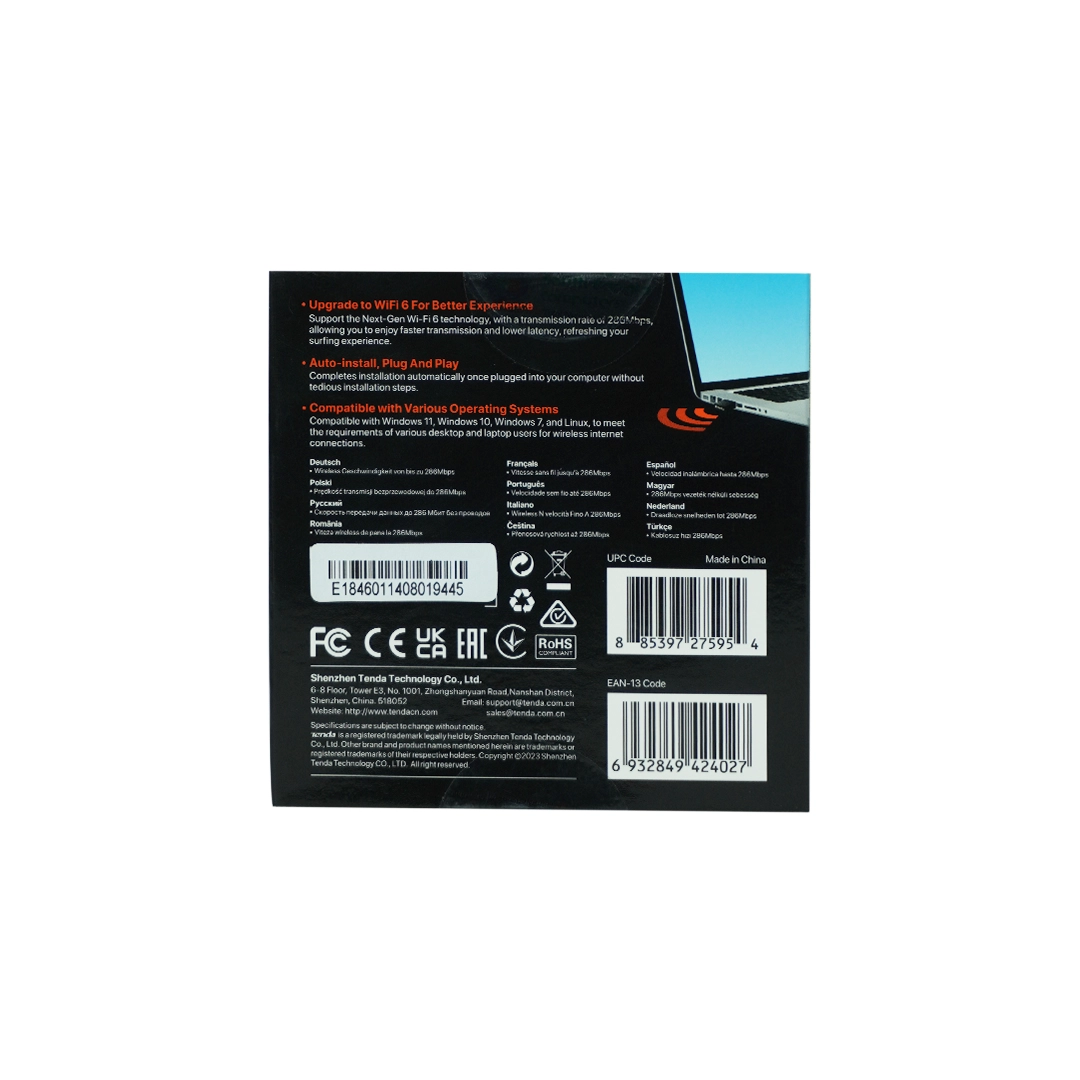 The Tenda AX300 Wi-Fi 6 Wireless Nano USB Adapter is a compact and powerful networking solution designed to upgrade desktops and laptops to the latest Wi-Fi 6 (802.11ax) standard. It delivers faster speeds, lower latency, and improved network efficiency—ideal for streaming, online gaming, video conferencing, and everyday internet use.