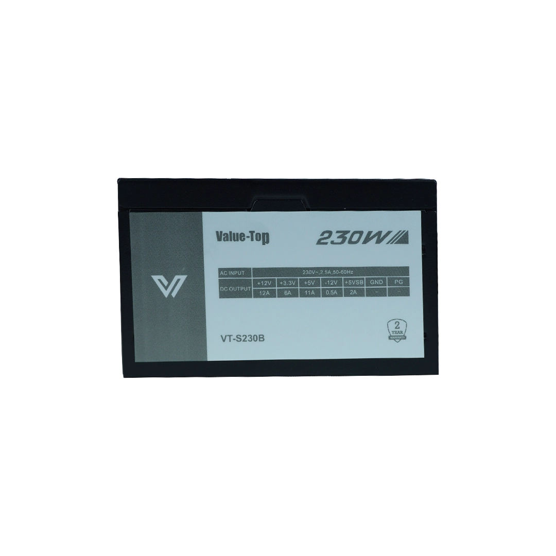 The Value-Top VT-S230B Plus Real 230W ATX Power Supply is a dependable and efficient power solution designed for entry-level and office desktop computers. Built to deliver stable and consistent power output, it ensures reliable performance for everyday computing tasks.