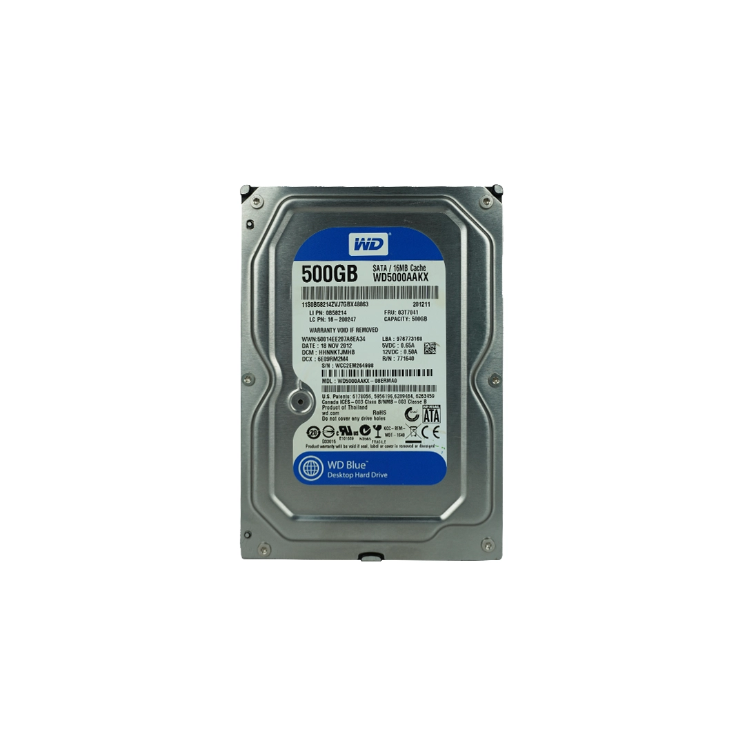 The WD Blue 500GB Internal Hard Drive is a dependable and efficient storage solution designed for desktop PCs, office systems, and DVR applications. With a 7200RPM spindle speed and SATA III interface, it ensures smooth system performance, fast data access, and reliable long-term operation.